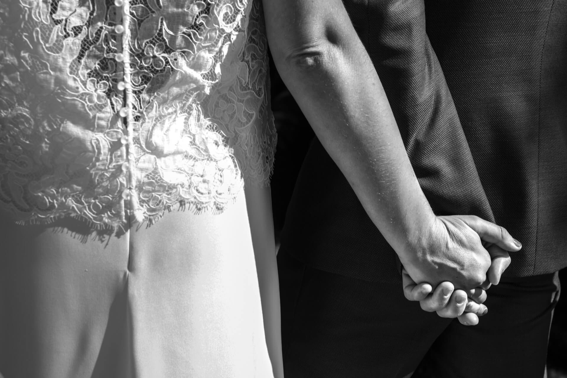 Voici la mariée, resplendissante, dans sa robe de dentelle fine, ses hauts talons pailletés d’argent, arborant une jolie tresse dans ses fins cheveux bruns. Elle paraît, simple et rayonnante, avec un visage complice, reflété dans les yeux de son futur époux qui s’en vient à elle, pour toujours, paré d’un somptueux costume de nuit, et d’un ravissant sourire, prêt à consentir de tout son être.